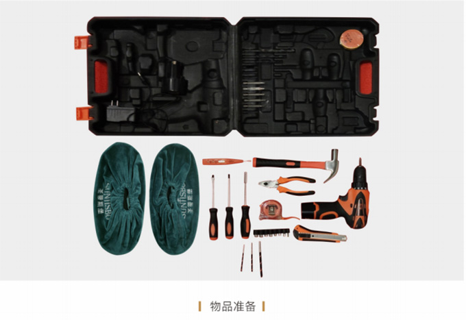 物資準備:上門前必須著我們統一工作服,佩戴工作證,準備好安裝工具、搬抬工具(搬運背帶等)、備件、筆記本、手套、鞋套、地墊、衛生清掃工具(清潔劑、抹布、掃把簸箕、拖把、吸塵器等)、瓶裝水、《我們安裝施工指示牌》、收據和我們產品說明書、《產品配送單》和《配送滿意度調查表》等物品。再帶上小禮品,例:鮮花或碳包去味禮包等。