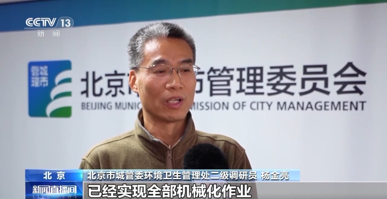 北京市城管委环境卫生管理处二级调研员 杨金亮:北京现在扫雪铲冰作业已经实现全部机械化作业,人工作业只体现在机械无法到达的区域。主要是细分不同雪情。小雪的时候,主要是以滚刷作业为主,如果是发展到大到暴雪,可能采取先用推雪铲,对待后面的残余的雪才用滚刷进行清扫。