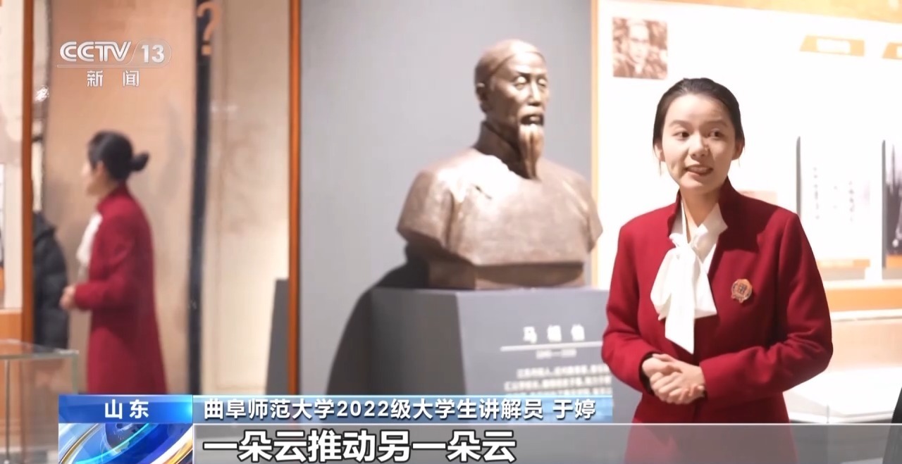 曲阜师范大学2022级大学生讲解员 于婷:教育是一棵树摇动另一棵树,一朵云推动另一朵云,一个灵魂影响另一个灵魂。在这里,我读懂先辈们的故事,也暗下决心,希望能够把先辈们的光走成自己的路,照亮后来的人。