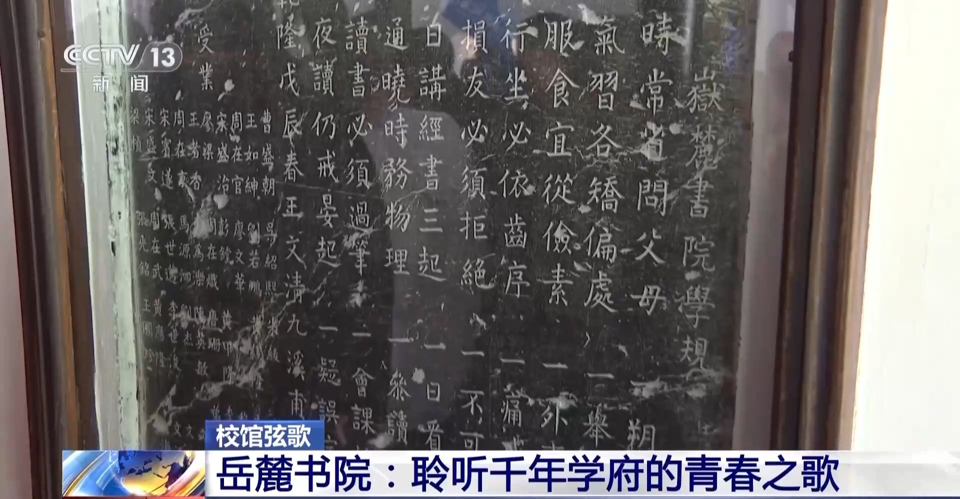 湖南大学岳麓书院文物工作办公室主任 郑明星:岳麓书院的千年历史文脉都体现在碑刻、对联、匾额之中。比如说《岳麓书院学规》,它体现了求知、经世致用的精神,体现了书院教育教学、人才培养这种求知求真的这种智慧,和现代育人都是一脉相承的。