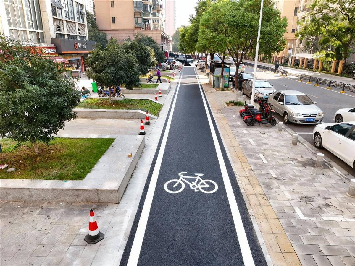 路面平整之后,还画上了清晰的非机动车道标线,人车分流,骑行、步行互不干扰。同时,为了防止机动车占道,沿线还加设了8处阻车桩,机动车再也不能“霸占”人行道了。