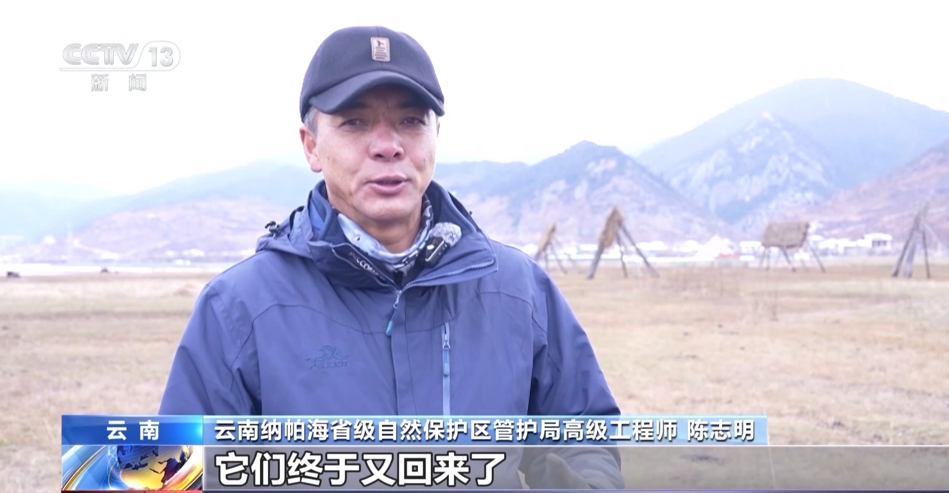 云南纳帕海省级自然保护区管护局高级工程师 陈志明:香格里拉的秋末来临时,我会不由自主跑到纳帕海边去看看是不是鹤来了。一旦听到鹤的鸣叫,内心感到很高兴,它们终于又回来了。黑颈鹤生活的环境,它们活动的规律怎么样,我都想去了解一下。只要有时间,我都会来纳帕海看看水鸟的变化、环境的变化,我也希望纳帕海的生态环境越来越好,变成飞羽的天堂。