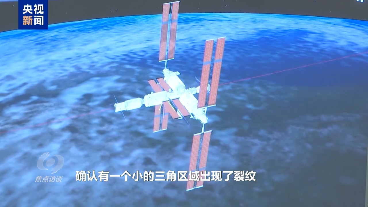 中国载人航天工程总设计师 周建平:11月4日,航天员进行舷窗检查的时候,发现舷窗边缘有一个局部异常现象,最初的照片是用相机拍的,航天员又用空间站上40倍的显微镜,对缺陷从不同角度进行了拍照。我们请从事玻璃的专家确认有一个小的三角区域出现了裂纹。