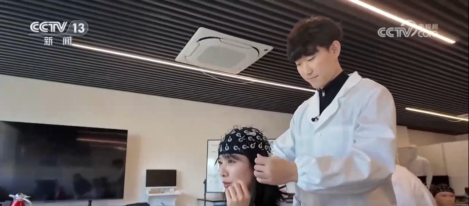 用意念控制动作,这样的场景不只存在于科幻电影里。眼下,“手随心动”已经走进现实,这一切都是靠着脑机接口技术,而这样技术的奥秘就藏在这所高校的实验室里。走进教学楼,记者注意到,这里有十几个与脑机接口相关的团队正在进行研究,这间实验室里就正在测试最新研发的“灵犀指”。记者戴上脑机帽,电脑就可以实时监测她的脑电波,已经装上机械手,试一下可以用意念能不能控制这第六根机械手指。现在想用“手指”去抓握这个球,好像不是很好控制。