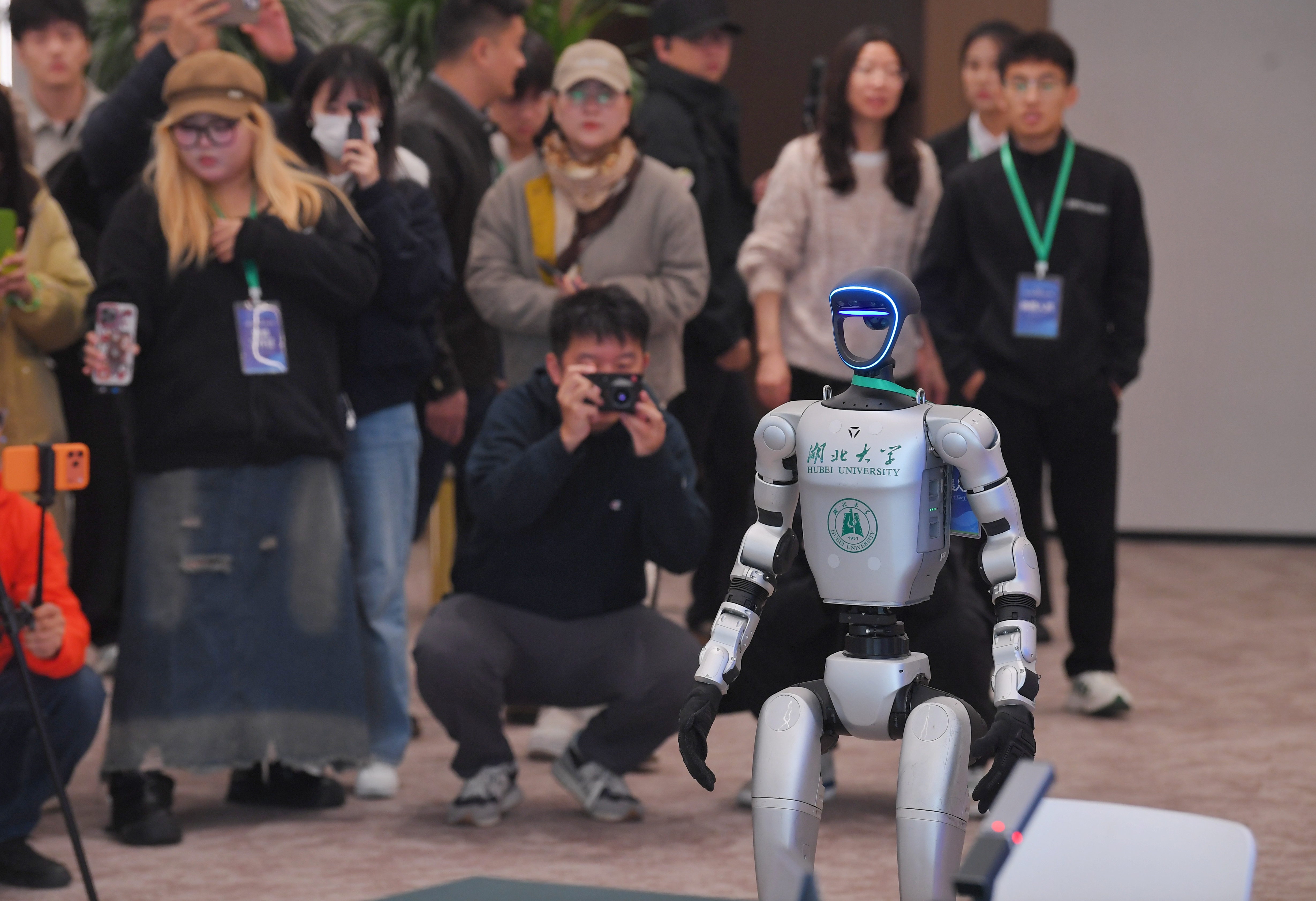 开赛前,机器人辩手进行才艺展示。辘话新京报记者 李木易 摄