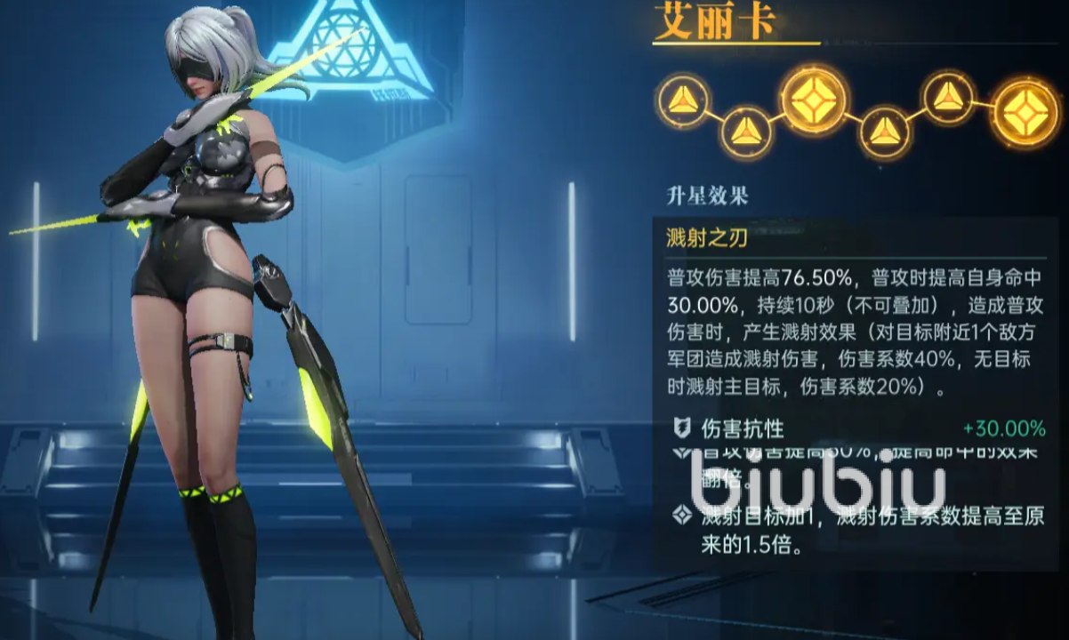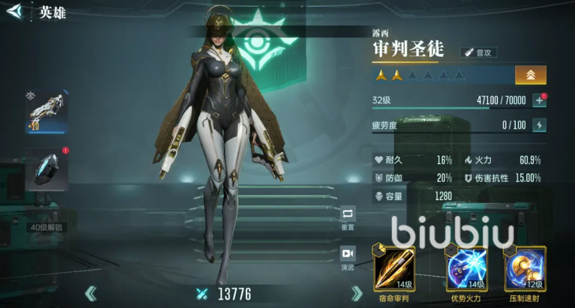 露西是第一个五连抽必出的角色,基本上新手都有,她的核心技“宿命审判”能让普攻的伤害提升,打出极高的普攻输出,同时还能在每次成功造成伤害的时候,提升自己的破甲能力,技能适合带石墨导弹或增熵强袭,增熵能让破甲和普攻伤害提高,并且每次普攻时,目标每有1种控制状态,就再让普攻伤害提升,他的石墨导弹会提升普攻伤害,在造成输出时,有15%的概率使得目标无法行动5秒,当自身命中高于敌方时,这个概率会提高50%。