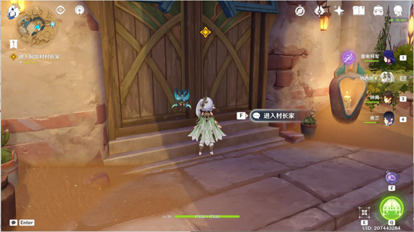2、原神进入村长家。行于