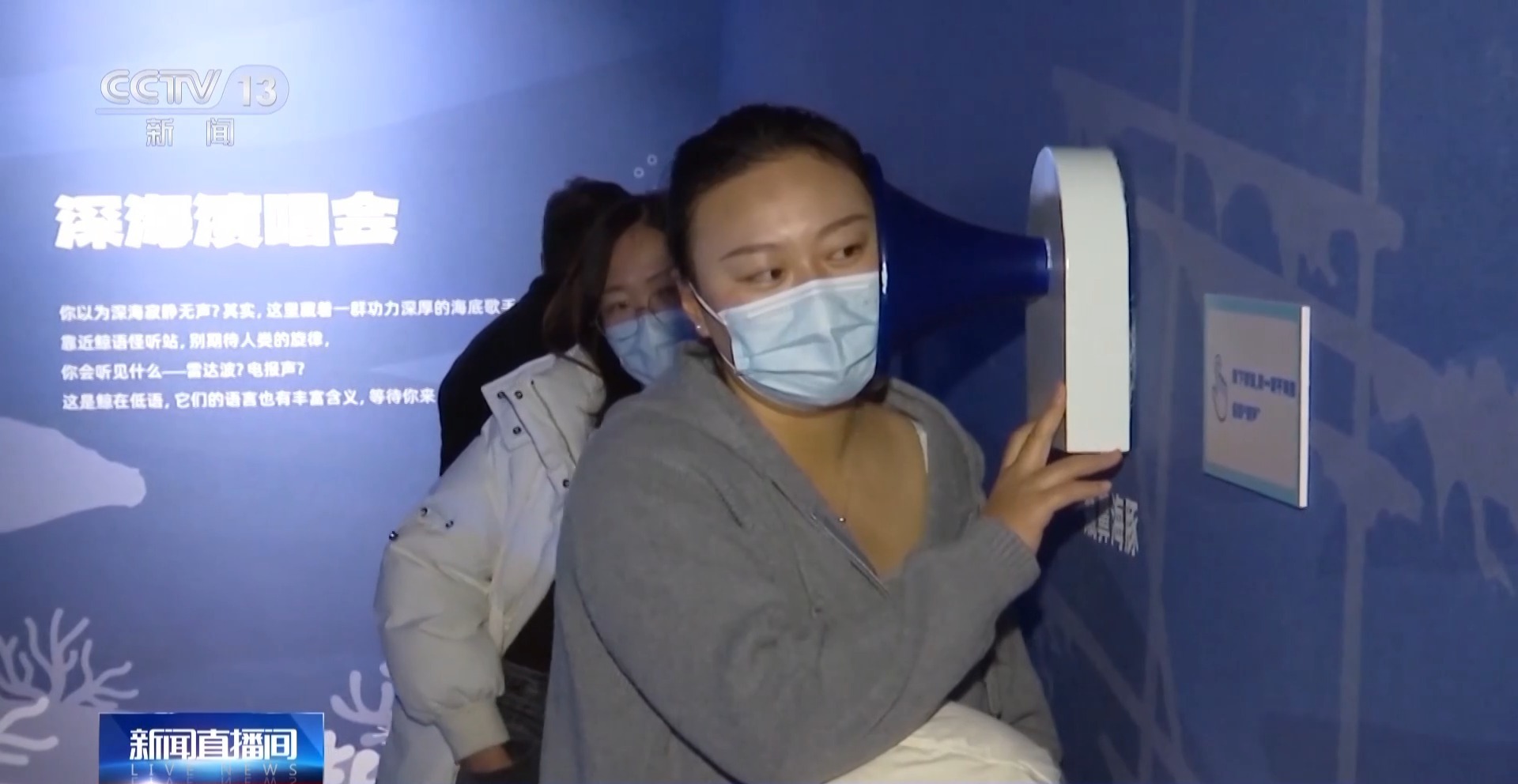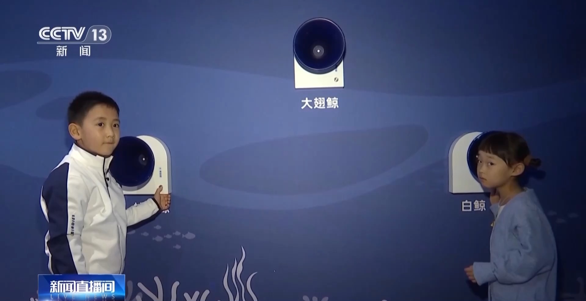在展厅的一角,大人小孩侧耳倾听,源自深海鲸类的低吟,穿越千万年时光,开启了跨越陆海的生命对话。