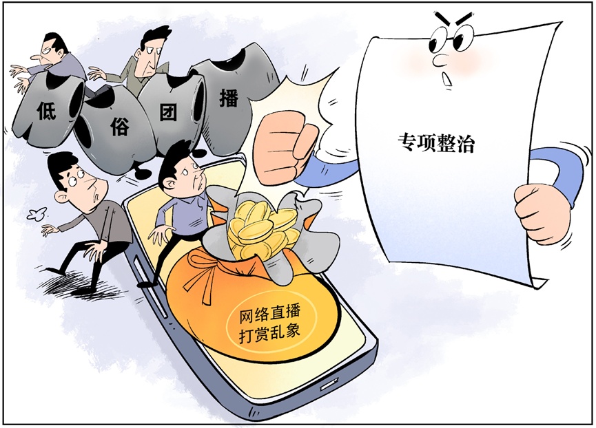 低俗团播,违背公序良俗。把博出位包装成才艺,把低俗恶搞美化成“打赏”流量,这种“感官至上、金钱至上”的扭曲剧本,在一次次“娱乐狂欢”中消解了积极向上的价值观,冲击和挑战社会的公序良俗底线。