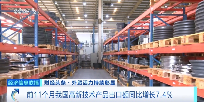 前11个月,我国高新技术产品出口额5.7万亿元,同比增长7.4% 。其中,生物技术、电子技术、航空航天技术等高附加值产品出口表现亮眼。眼下,江苏苏州工业园区聚集了100多家航空航天产业上下游企业。在江