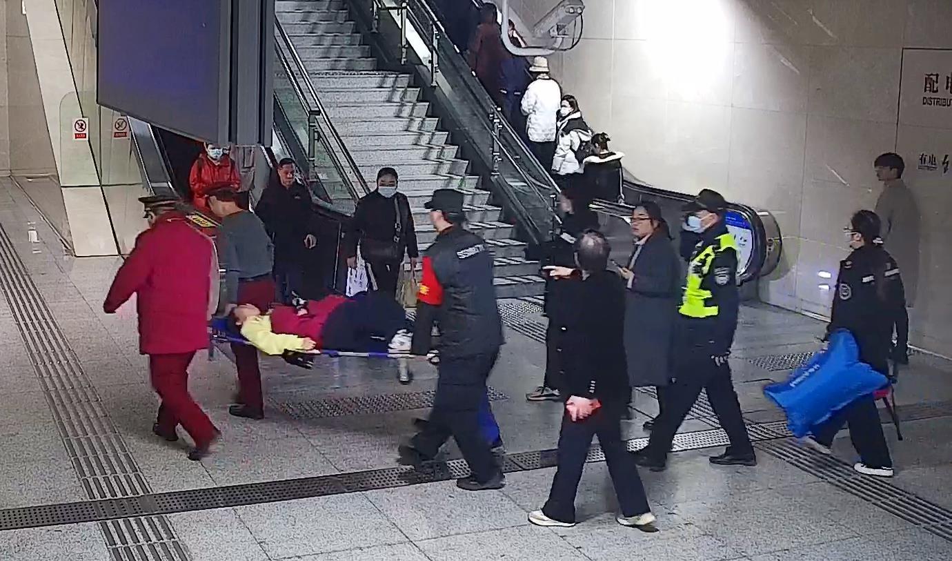 在等待急救120到来期间,值班站长何崇眈脱下身上制服棉袄,轻轻盖在乘客身上保暖;驻站民警疏散围观人群,保持现场秩序;车站护卫取来担架,为后续转运做好准备。