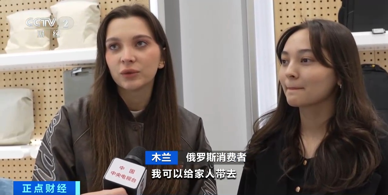 俄罗斯消费者 木兰:我可以给家人带去中国或是欧洲品牌的各种礼物,商品都是免税的,这对我来说不仅能省钱,还能选到给家人的礼物。