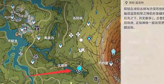 1、打开须弥地图,蔷薇传送到化城郭右边的绽放锚点那。