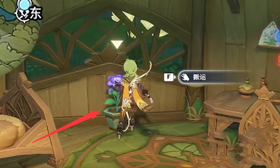 5、笔记中让我们去搬运蔷薇花,点击搬运将花搬到屋子外去。