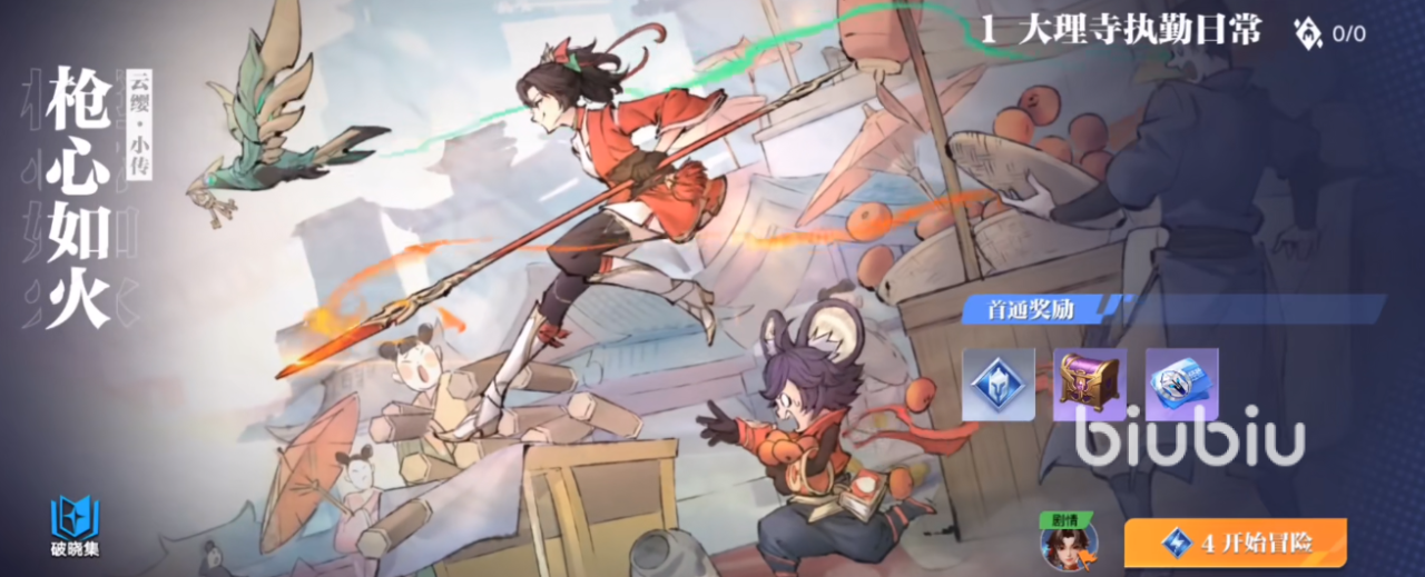 目前游戏公开的主线剧情按照主操人物为册,分别有铠、安琪拉、李白、云缨的小传,每一册小传都有多个挑战关卡,挑战目标有血量30%以上、限定时间内等条件,完成均可获得钻石。